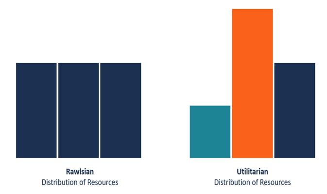 The pictorial graph of distribution of resources mentioned above clearly depicts the problem of justice in the society mentioned by John Rawls in opposed to utilitarianism.